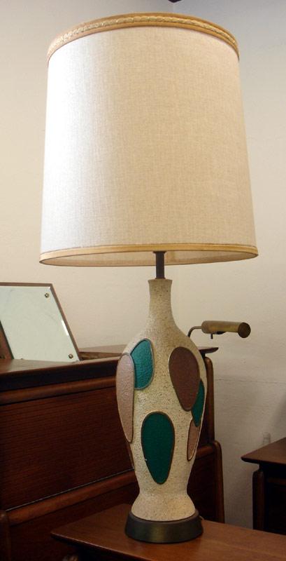 Signed FAIP lamp, retro, Mid Century Modern circa 1950s. Shade is not included. No chips or cracks in the lamp ceramic and it lights right up. This is a very stylish table lamp with a cool abstract modern pattern on the body. Stop by our St. Petersburg store to see a wider selection of our atomic age / Eames era lighting.
