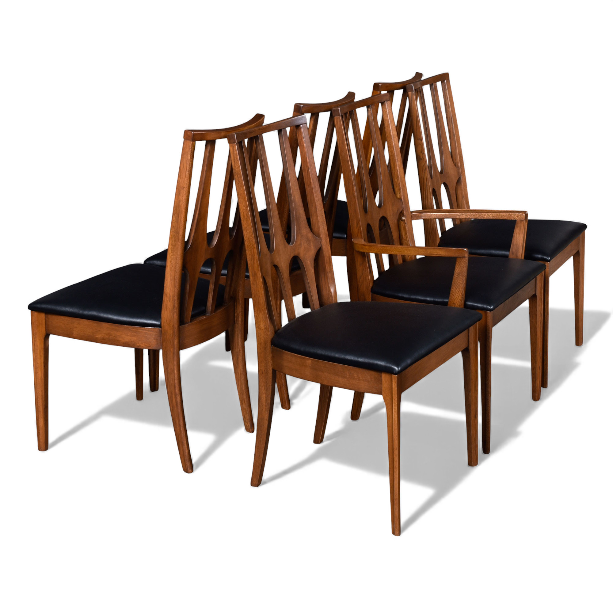Broyhill’s Brasilia collection is one of the most sought after lines of American furniture from the period. These chairs highlight the best design element of Brasilia, Oscar Niemeyer’s signature oblong arches. Oscar Niemeyer was an architect before he was a furniture designer. This collection for Broyhill emulated many of the forms he used to create the buildings of Brazil’s capital, Brasilia.