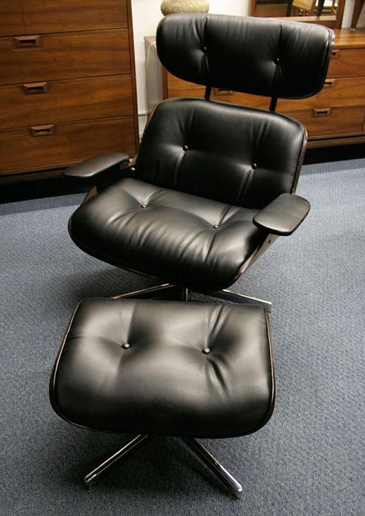 There are is no maker’s mark to confirm the chair’s brand or designer but it is certainly vintage and designed modeled after the famed Eames lounge chair and is of top quality.