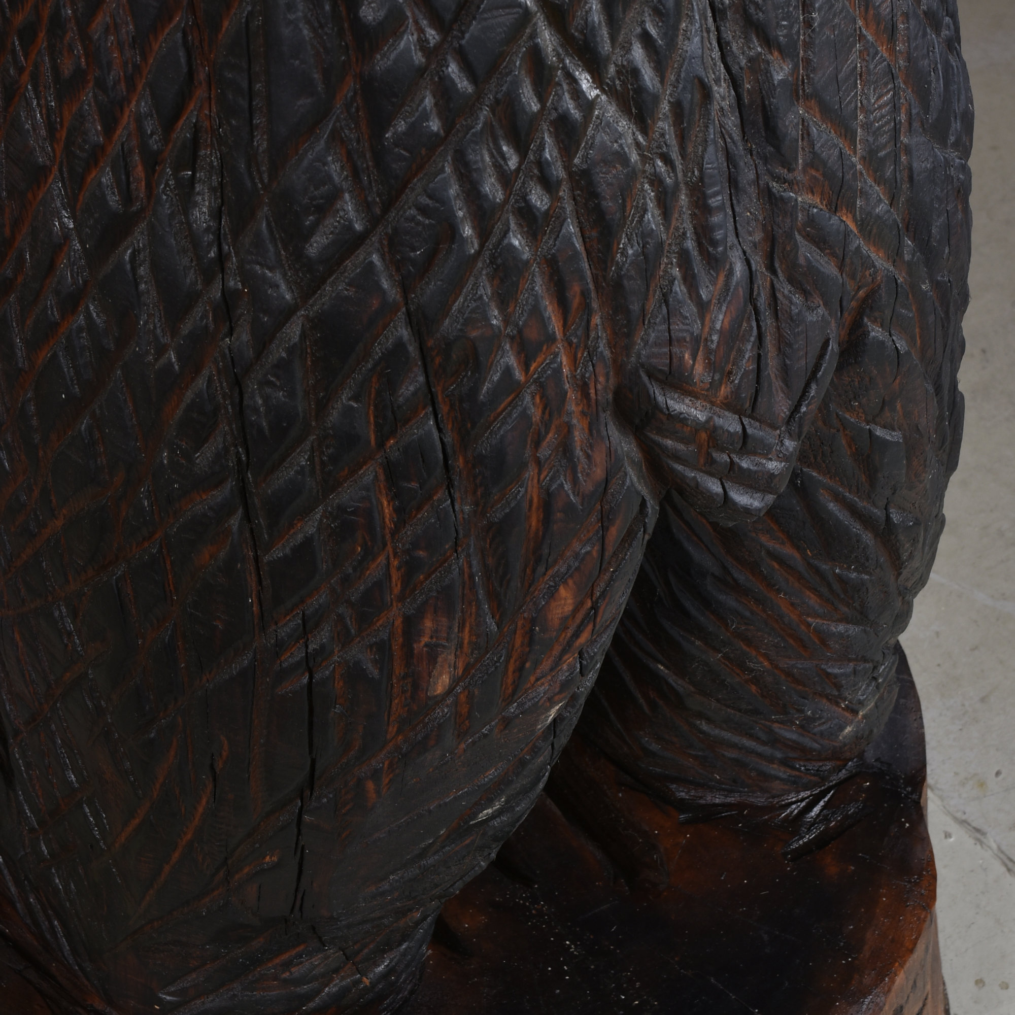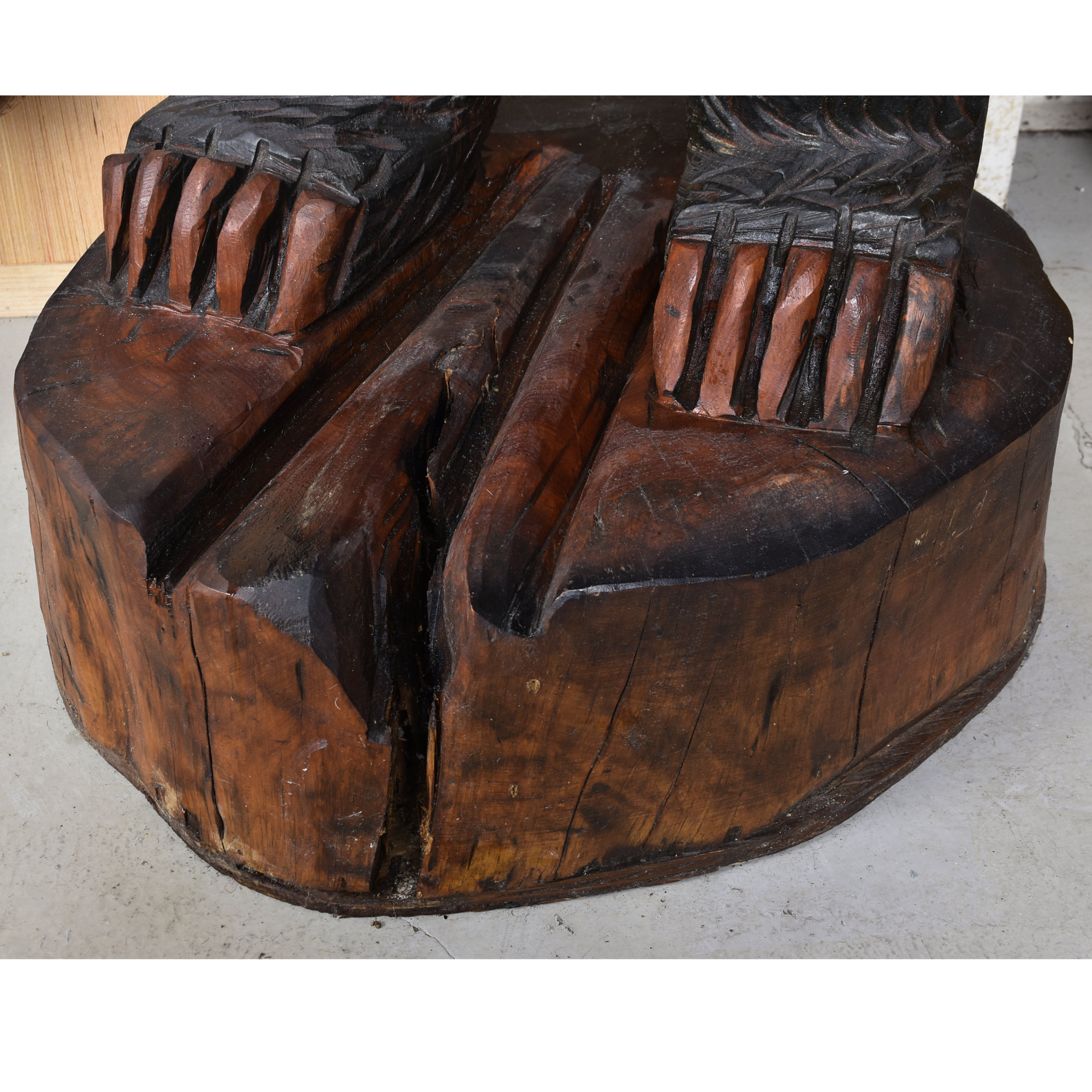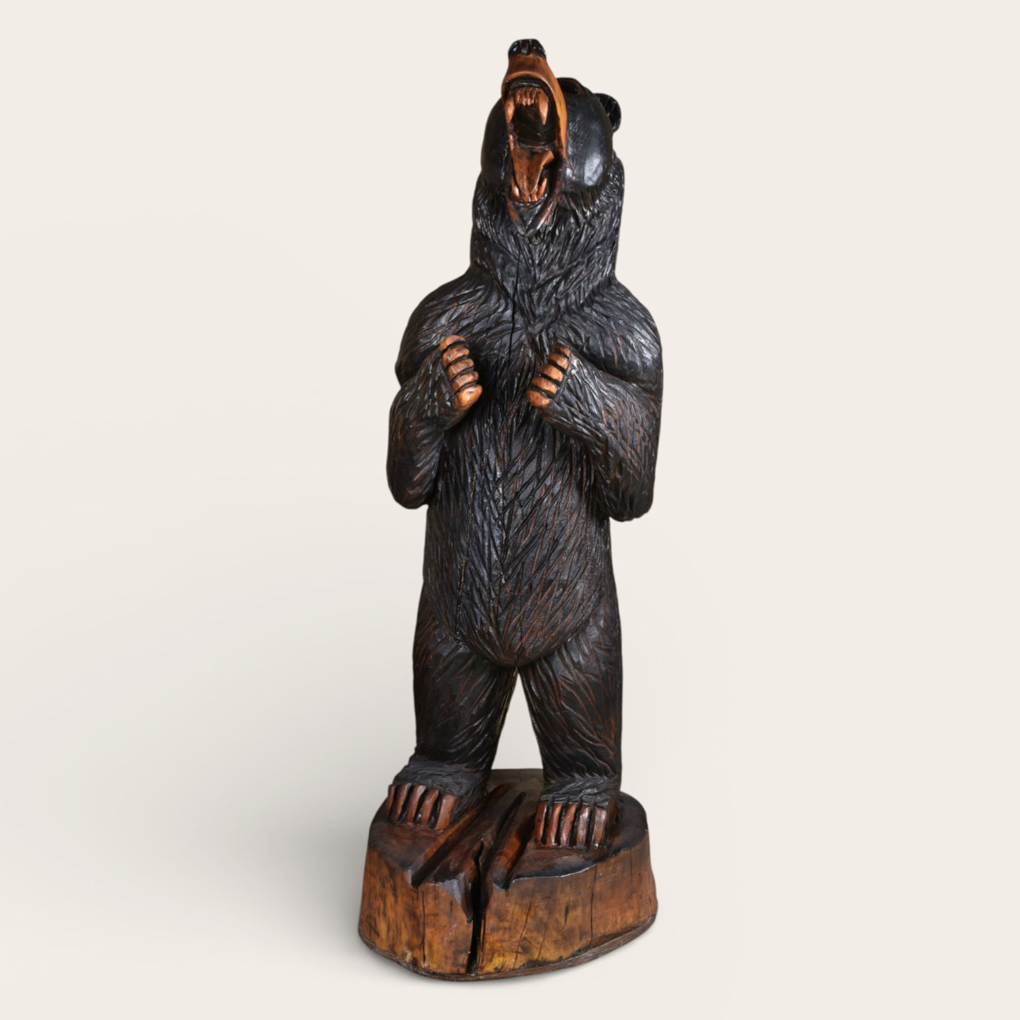 This type of monumental carving draws from the tradition of early 20th‑century Black Forest and American lodge art, where wildlife sculptures were created to embody craftsmanship, storytelling, and a connection to nature. While the maker of this piece is unknown, the execution suggests a highly skilled artisan with a deep understanding of form and movement.