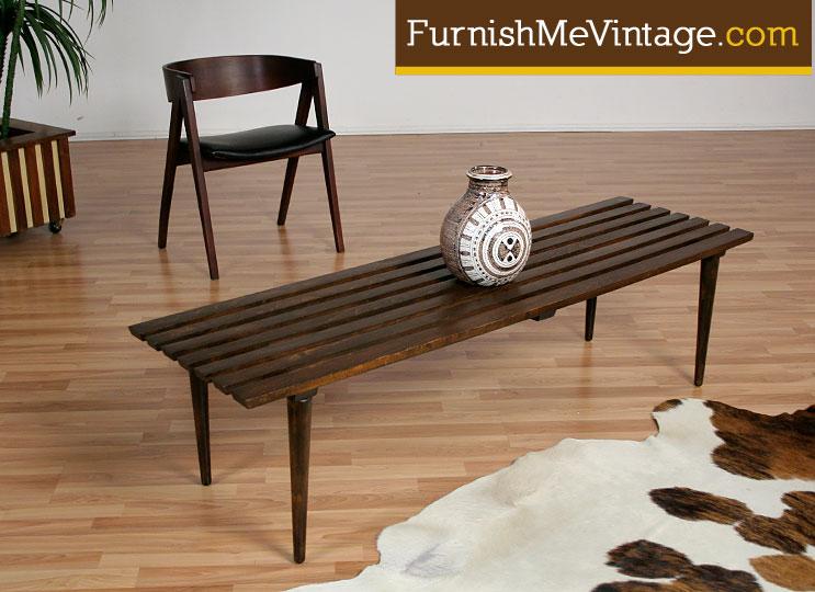 Mid Century Modern slat coffee table. Long, sleek profile. Pencil tapered legs. Perfect compliment to your atomic age sofa.