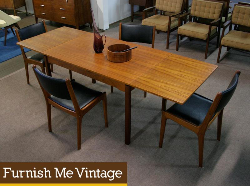 Narrow width Mid Century Modern Danish teak draw leaf dining table. This listing is for the table only.