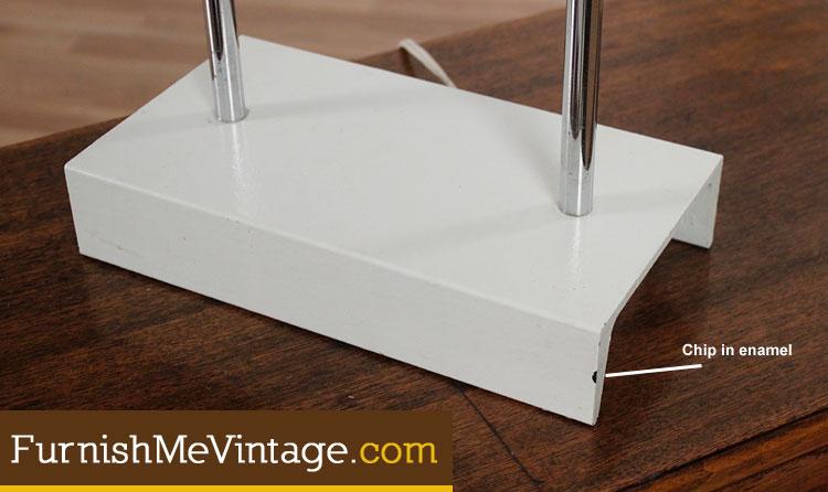 Both lamp heads working. Clean chrome. One paint chip on base (see photos)