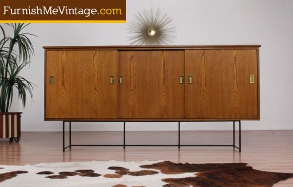 Mid Century Modern Large Wrought Iron Base Sideboard