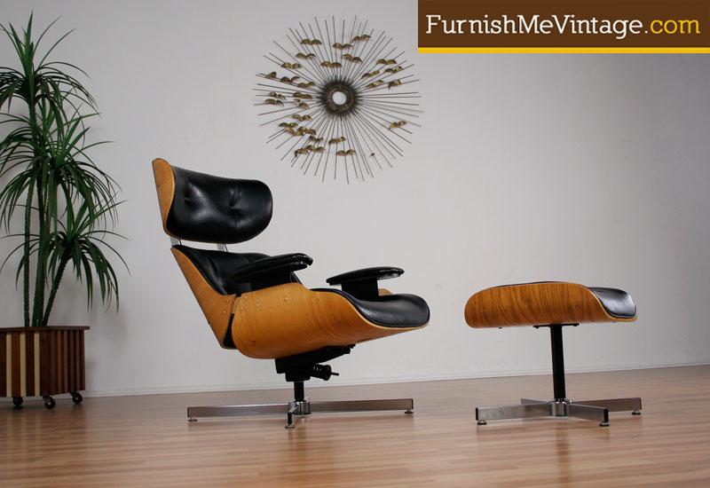 Excellent vintage condition except a few minor blemishes (see photos). Ottoman has new upholstery. Tilt swivel mechanism work well, no abnormal behavior.