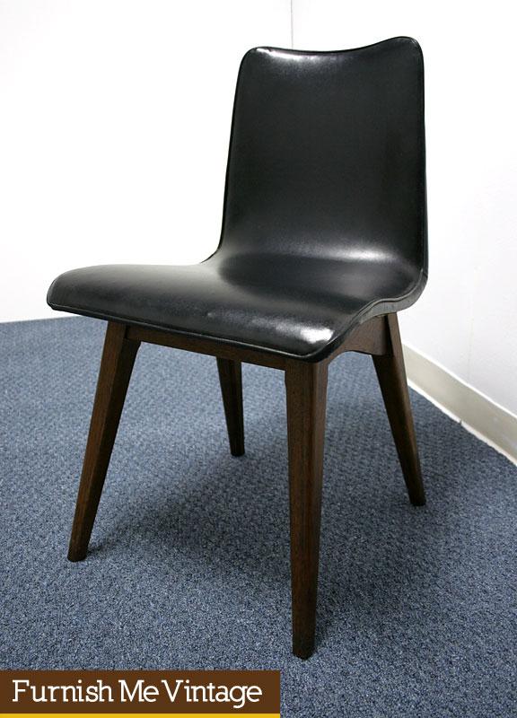 Vintage Mid Century Modern Sligh & Lowry Danish style chair. Original black Naugahyde upholstery in excellent condition with no rips or holes. This chair rests on a rich walnut frame also in great shape with no substantial wear. This would make a lovely desk or accent chair. Comfort and style.