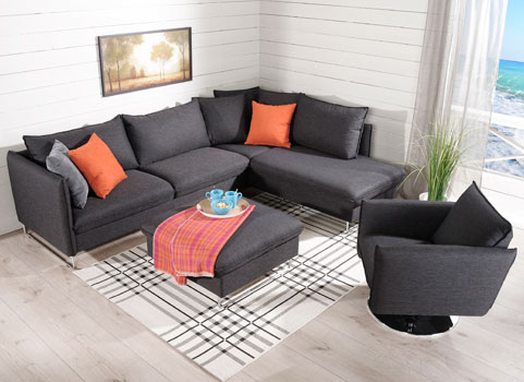 Mid century modern Danish rocking chair reupholstered in a brown, geometric fabric. The fabric also features squares of blue, pale yellow, and a lighter brown/orange shade. Original wood frame in great condition and has a slatted back and beautiful curved arms. Unmarked but excellent craftsmanship. Consider pairing this with one of our many sofas (sold separately).