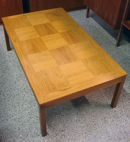 Matching pair of living room tables made in Norway with the typical modern, contemporary Scandinavian quality and design aesthetic. Scandinavian quality and design. Stylish parquet wood pattern on the table tops.