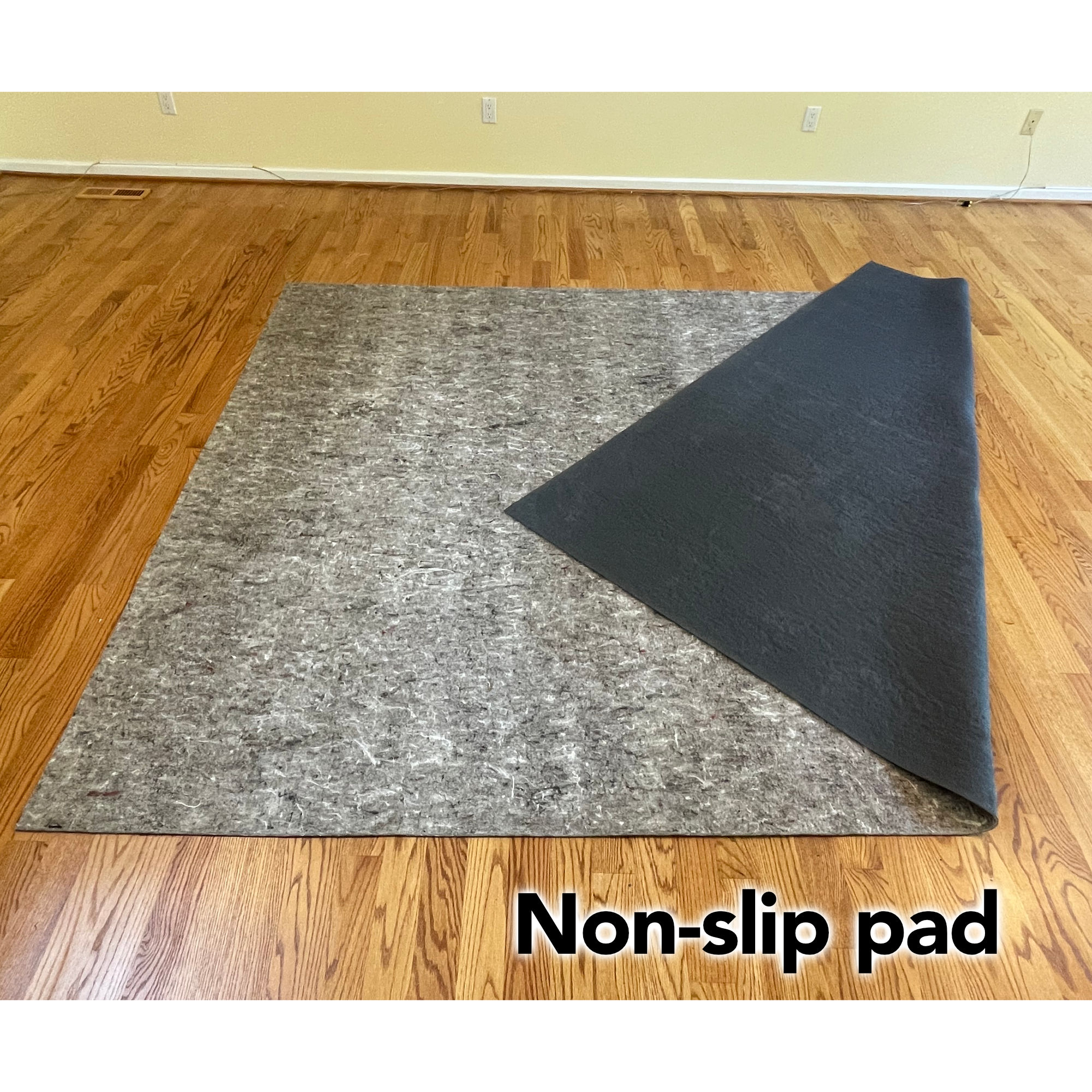 We are also including a like-new condition, non-slip pad with this rug. The pad provides cushion as well as preventing the rug from sliding.