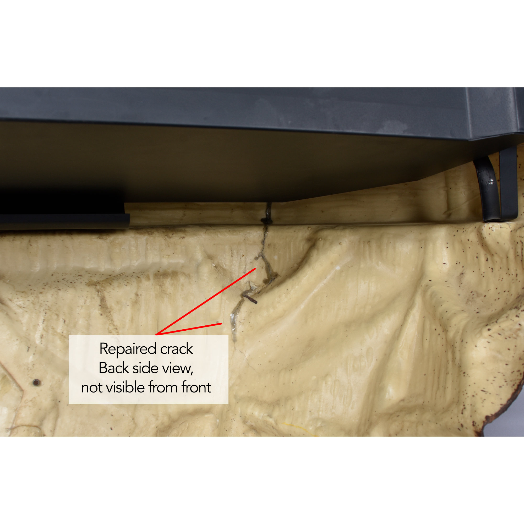 Condition: The logs light up and the heater works. Vintage condition. There is a repaired crack on the stone facade and a chip on the bottom corner. Both of these fllaws are barely visible from front, so we have included photos from the back view so you can see them.