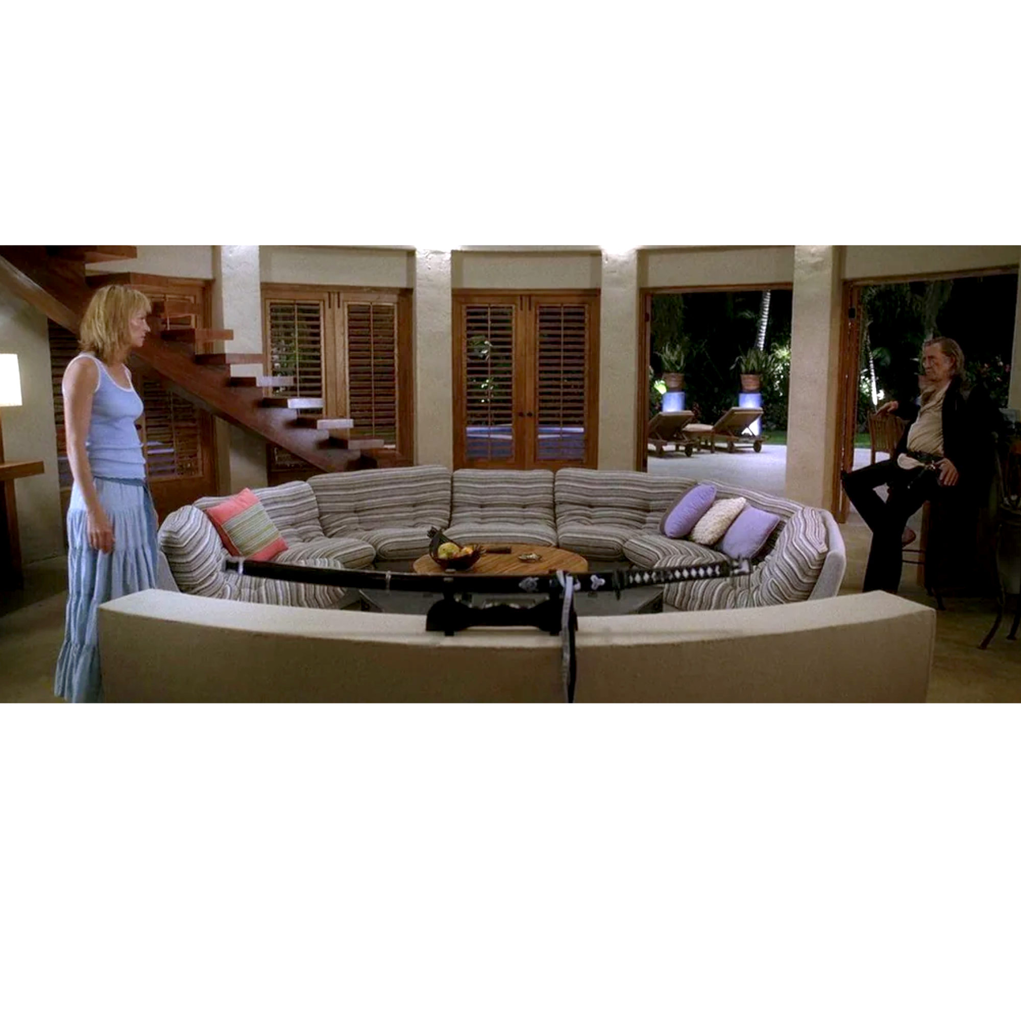Quentin Tarantino fans may recognize this sofa from the movie “Kill Bill.” Ours is not the sofa that was used in the film, but the same model was featured in one of the character’s home.